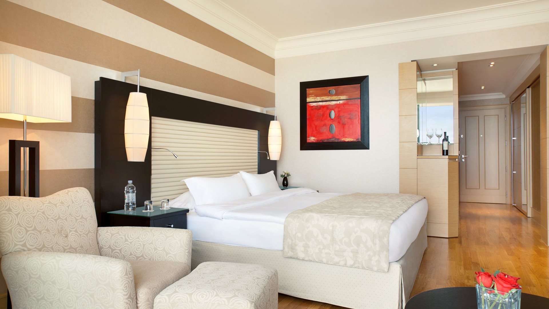 Executive Suite - (73 кв.м) - большая спальня, просторная гостиная, ванная комната, и балкон. Вид на море или поля для гольфа. Номера имеют площадь 73 кв. метра + балкон 14 кв. метра. Максимальное размещение – 3 взрослых и ребенок до 12 лет.